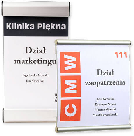Identyfikacja przydrzwiowa biur, gabinetów i wszelakich innego rodzaju pomieszczeń to bardzo istotna sprawa pokazująca dbałość o poprawną komunikację i szczegół. Szeroka gama oferowanych tabliczek przydrzwiowych, systemów oznakowania oraz modułów informacyjnych pozwala dobrać produkt pod indywidualne wymagania klienta, a często zaoferować o wiele więcej niż mogłoby się wydawać.