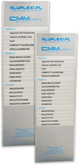 Poznaj ofertę wyselekcjonowanych modeli, które produkujemy z niebywałą starannością. Nasze tabliczki informują i dają przekaz już bardzo dużej ilości ludzi w Polsce i nie tylko. Może nawet nie zdajesz sobie sprawy, ale Twój zachwyt podczas odwiedzin w dużym biurowcu spowodowany jasną i czytelną informacją, gdzie znajduje się poszukiwane pomieszczenie, jest po części naszą zasługą. Zadbaj, aby postrzegano Ciebie jak profesjonalistę, stosując najwyższej klasy profesjonalne rozwiązania identyfikacji i informacji.